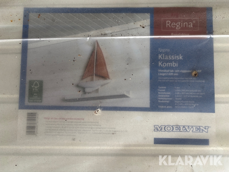 Tak- och väggpanel Moelven Regina Klassisk Kombi Vitmålad 6x390x2420mm - 18 paket