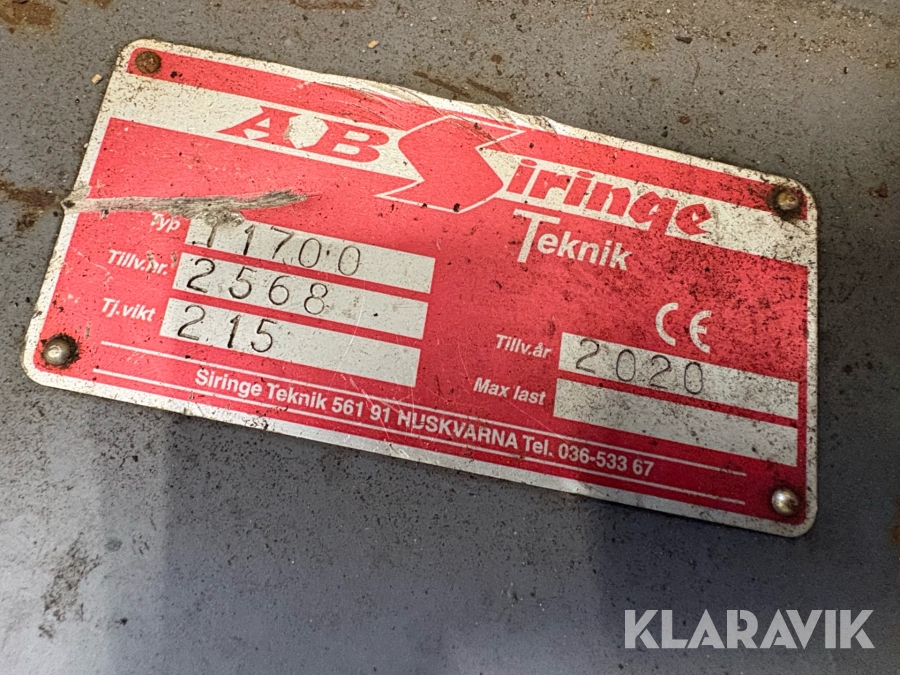 Boka frakt? Det finns ingen specifik information om frakt för just det här objektet, men om du skickar oss en förfrågan via vårt fraktformulär, så undersöker vi möjligheten. Paket, EU-pall eller större maskin? Klaravik har fraktavtal med Schenker och i de fall vi kan hjälpa till med frakt gäller det objekt som ryms i paket eller inom en EU-pall (upp till 120*80 cm och 990 kg). Det går att beställa frakt inom Sverige, dock inte till utlandet. Vid frakt på större maskiner rekommenderar vi gärna transportföretag som du kan kontakta.