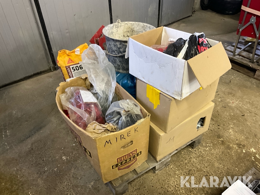 Pall med diverse betong/armeringstillbehör