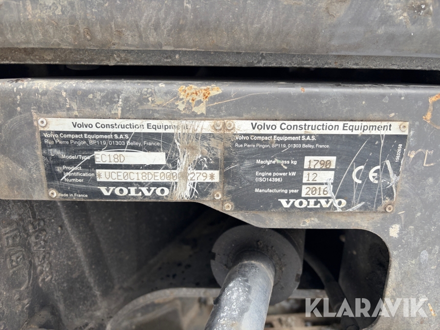 Grävmaskin Volvo EC18D med redskap
