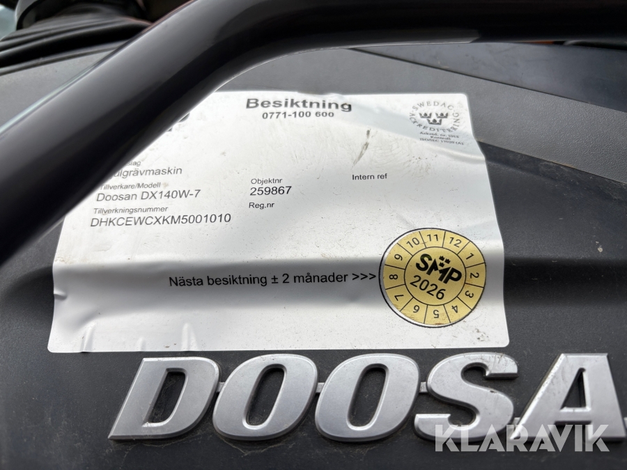 Hjulgrävare / grävmaskin Doosan DX140W med grävsystem och tippvagn