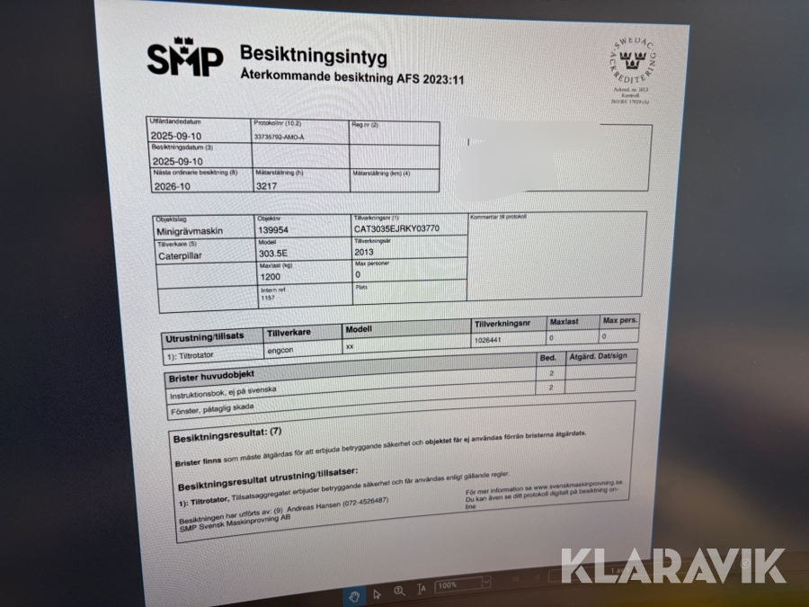 Du som köpare är skyldig att kontrollera objektet vid hämtning. Skiljer sig något avsevärt jämfört med informationen på klaravik.se? Kontakta då Klaravik innan du tar objektet från platsen. Läs fullständiga köpvillkor.