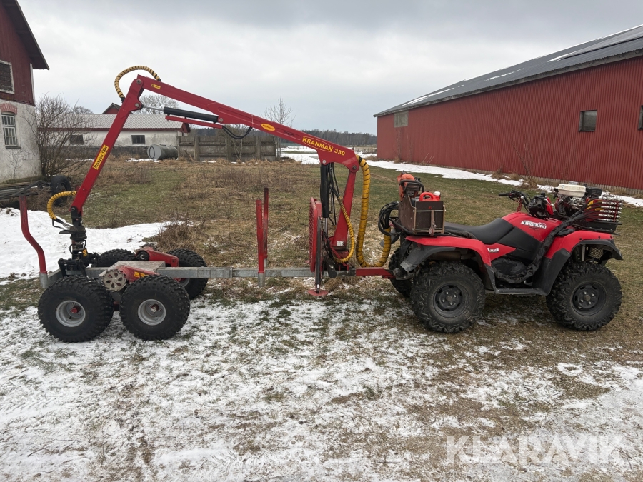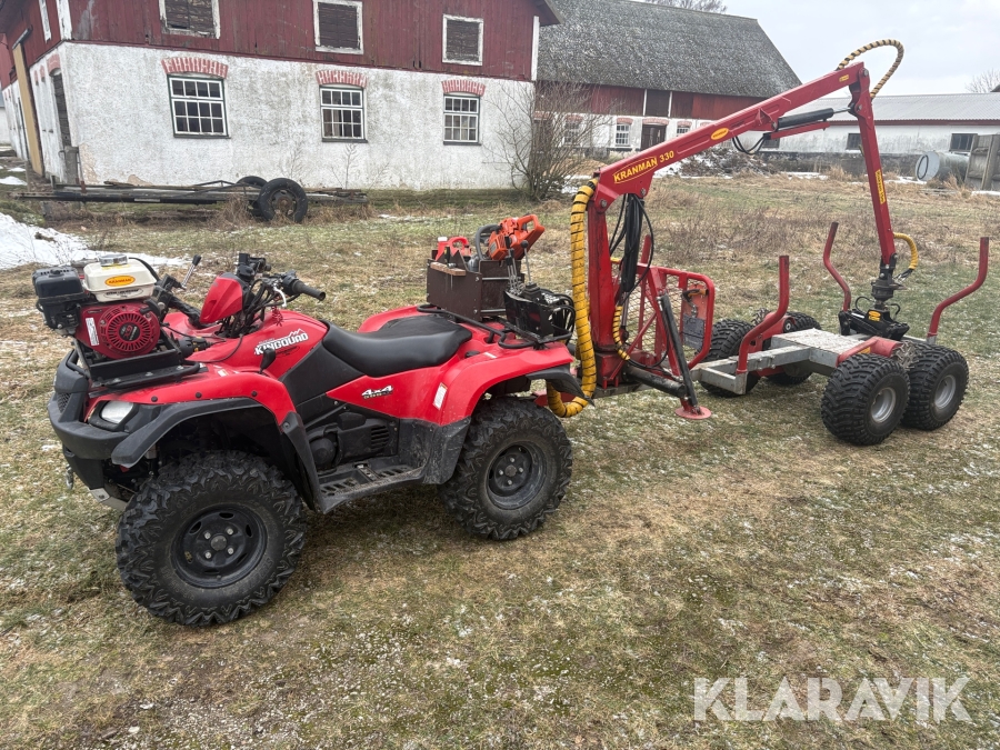 ATV Suzuki Kingquad 4x4 500 AXi med skogsvagn kranman T1700 & K330 kran