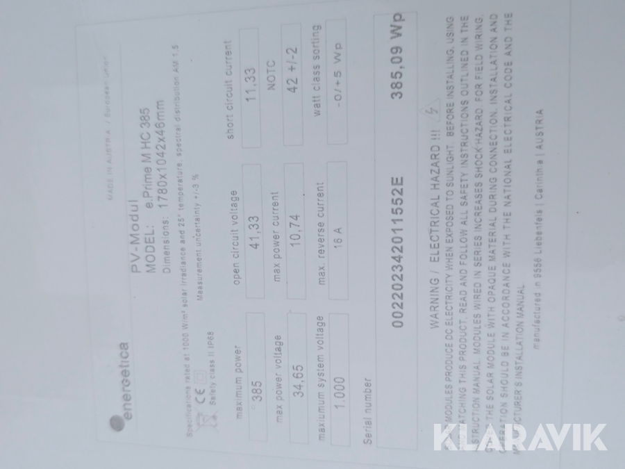 Solpaneler Energetica e.Prime M HC 385 - 19 st
