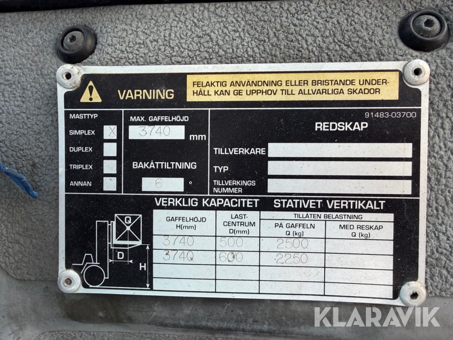 Boka frakt? Det finns ingen specifik information om frakt för just det här objektet, men om du skickar oss en förfrågan via vårt fraktformulär, så undersöker vi möjligheten. Paket, EU-pall eller större maskin? Klaravik har fraktavtal med Schenker och i de fall vi kan hjälpa till med frakt gäller det objekt som ryms i paket eller inom en EU-pall (upp till 120*80 cm och 990 kg). Det går att beställa frakt inom Sverige, dock inte till utlandet. Vid frakt på större maskiner rekommenderar vi gärna transportföretag som du kan kontakta.