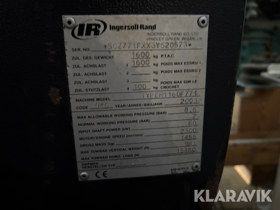 Kompressor Ingersoll-Rand TYPER1160F771