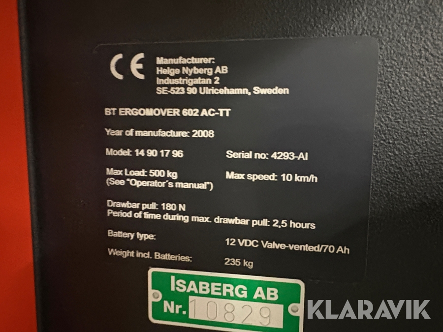 Dragtruck / Åklok BT Ergomover 602 AC-TT