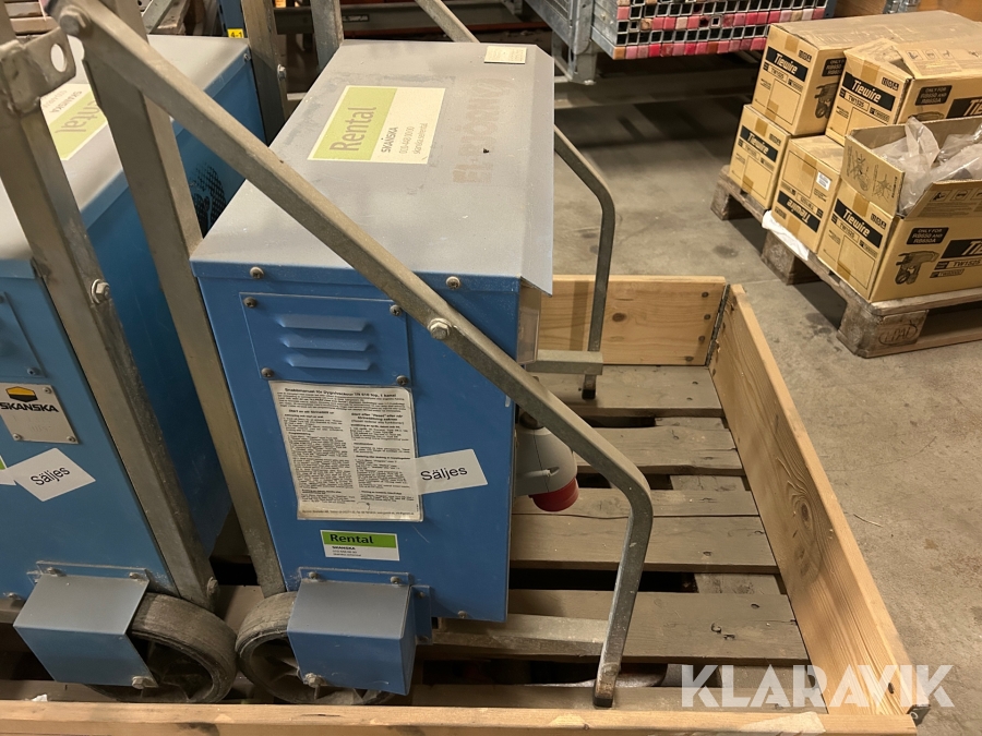 Boka frakt? Det finns ingen specifik information om frakt för just det här objektet, men om du skickar oss en förfrågan via vårt fraktformulär, så undersöker vi möjligheten. Paket, EU-pall eller större maskin? Klaravik har fraktavtal med Schenker och i de fall vi kan hjälpa till med frakt gäller det objekt som ryms i paket eller inom en EU-pall (upp till 120*80 cm och 990 kg). Det går att beställa frakt inom Sverige, dock inte till utlandet. Vid frakt på större maskiner rekommenderar vi gärna transportföretag som du kan kontakta.