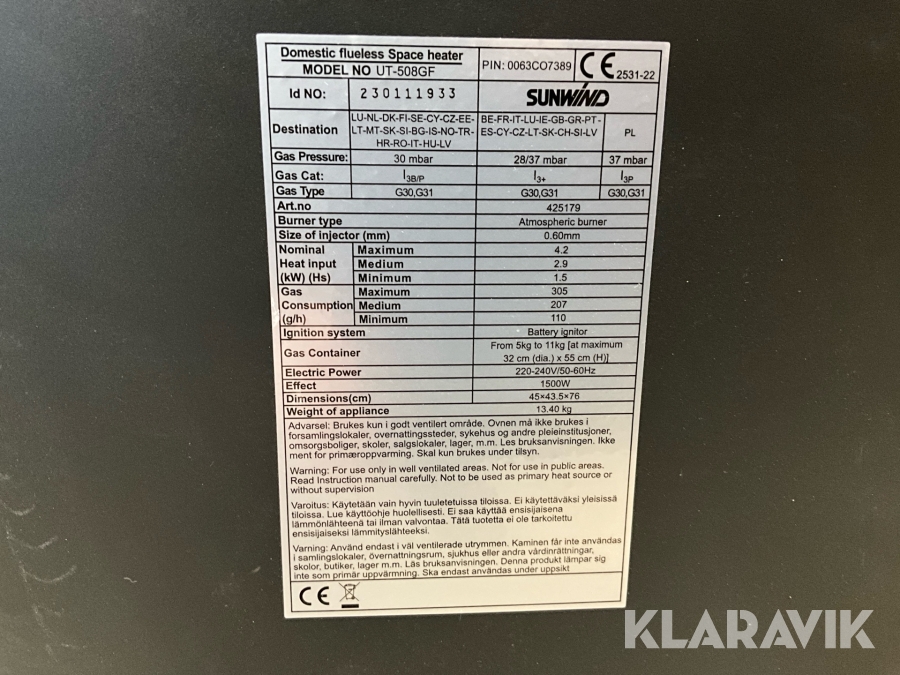 Boka frakt? Det finns ingen specifik information om frakt för just det här objektet, men om du skickar oss en förfrågan via vårt fraktformulär, så undersöker vi möjligheten. Paket, EU-pall eller större maskin? Klaravik har fraktavtal med Schenker och i de fall vi kan hjälpa till med frakt gäller det objekt som ryms i paket eller inom en EU-pall (upp till 120*80 cm och 990 kg). Det går att beställa frakt inom Sverige, dock inte till utlandet. Vid frakt på större maskiner rekommenderar vi gärna transportföretag som du kan kontakta.
