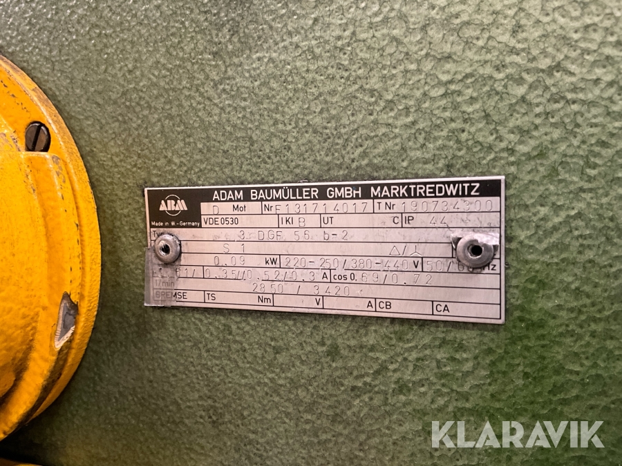 Boka frakt? Det finns ingen specifik information om frakt för just det här objektet, men om du skickar oss en förfrågan via vårt fraktformulär, så undersöker vi möjligheten. Paket, EU-pall eller större maskin? Klaravik har fraktavtal med Schenker och i de fall vi kan hjälpa till med frakt gäller det objekt som ryms i paket eller inom en EU-pall (upp till 120*80 cm och 990 kg). Det går att beställa frakt inom Sverige, dock inte till utlandet. Vid frakt på större maskiner rekommenderar vi gärna transportföretag som du kan kontakta.