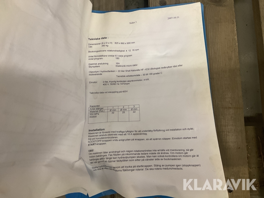 Boka frakt? Det finns ingen specifik information om frakt för just det här objektet, men om du skickar oss en förfrågan via vårt fraktformulär, så undersöker vi möjligheten. Paket, EU-pall eller större maskin? Klaravik har fraktavtal med Schenker och i de fall vi kan hjälpa till med frakt gäller det objekt som ryms i paket eller inom en EU-pall (upp till 120*80 cm och 990 kg). Det går att beställa frakt inom Sverige, dock inte till utlandet. Vid frakt på större maskiner rekommenderar vi gärna transportföretag som du kan kontakta.