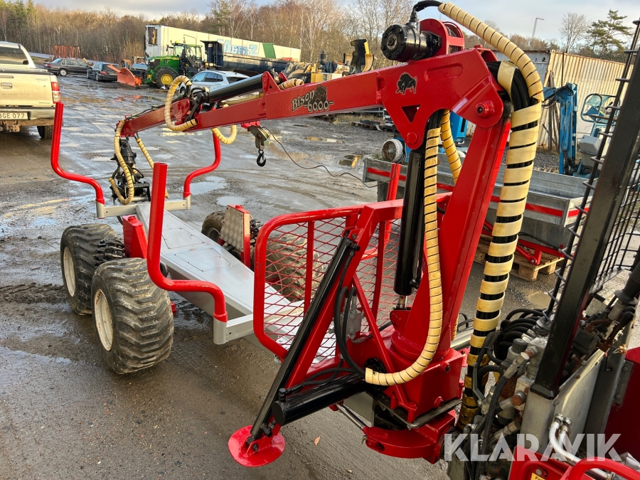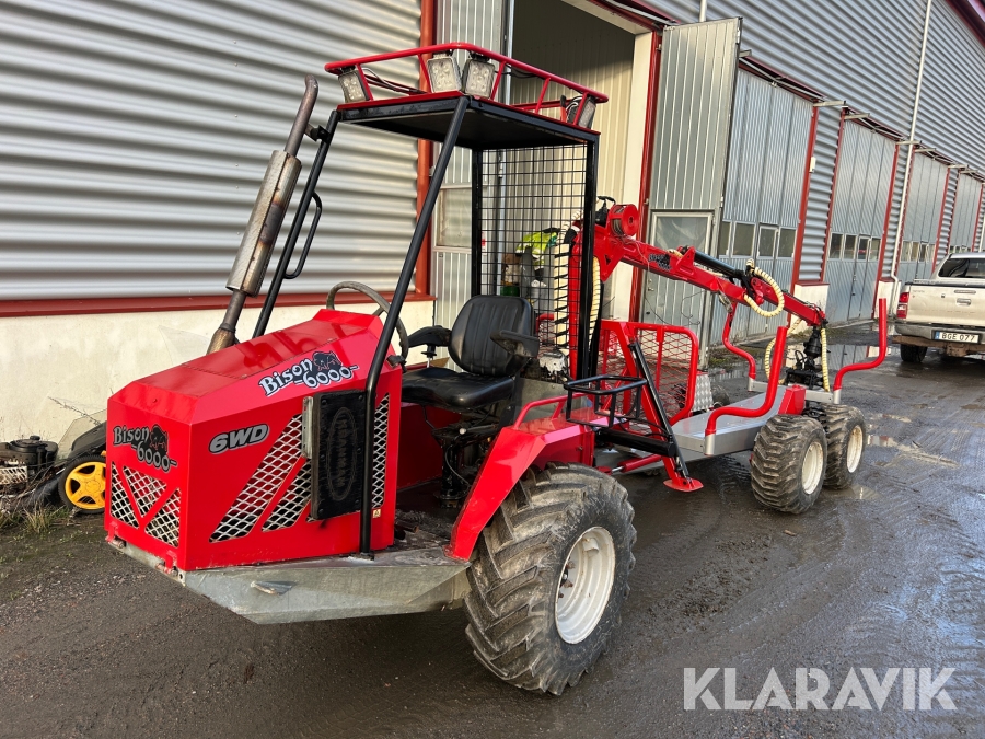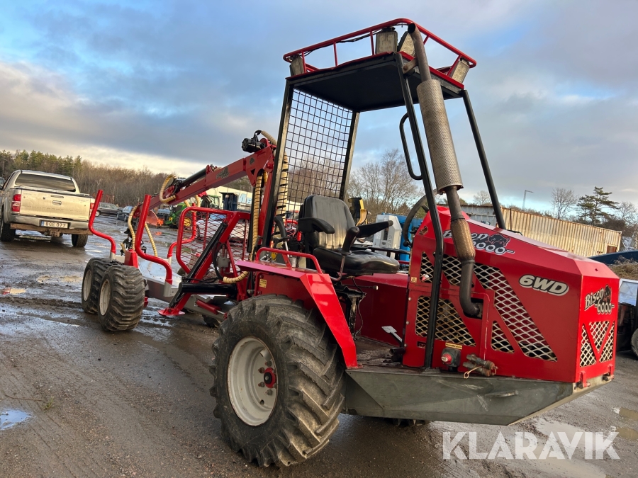 Miniskotare Bison 6000 med timmergrip, gripskopa & flak