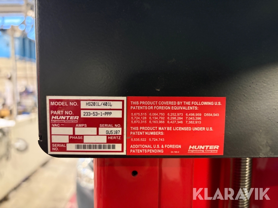 Hjulinställning Hunter HawkEye HS201L/401L