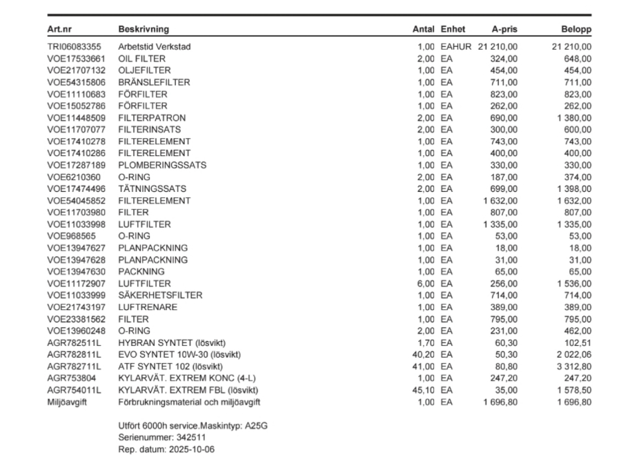 • Serie/chassinummer framgår