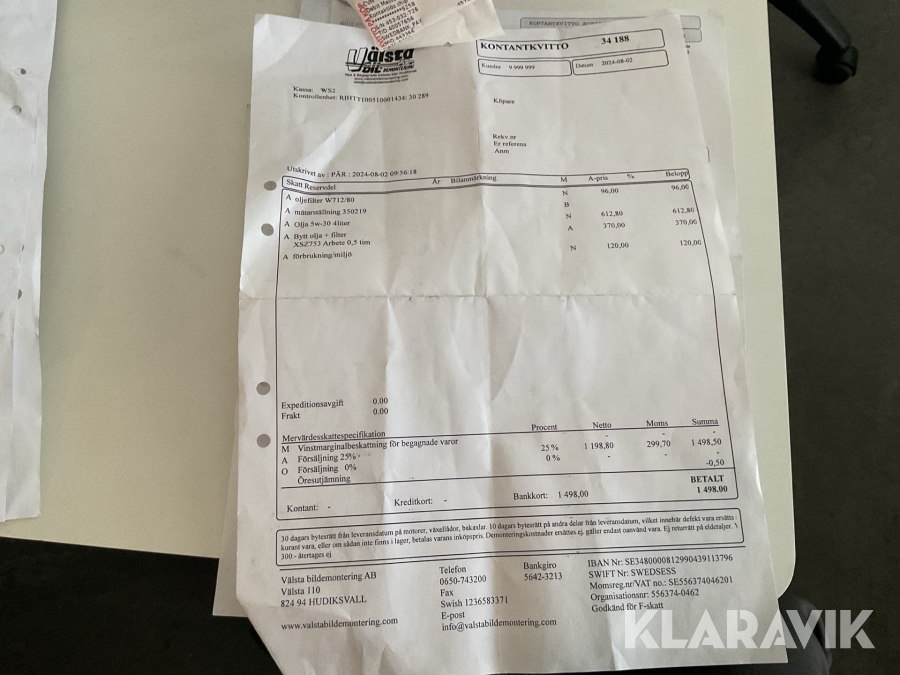 Du som köpare är skyldig att kontrollera objektet vid hämtning. Skiljer sig något avsevärt jämfört med informationen på klaravik.se? Kontakta då Klaravik innan du tar objektet från platsen. Läs fullständiga köpvillkor.