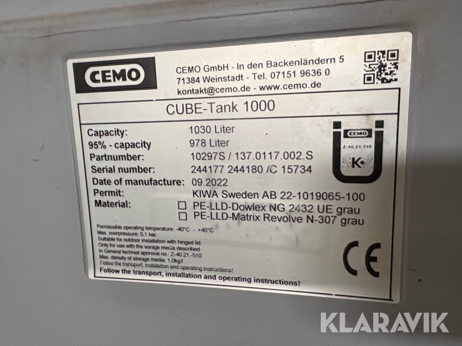 Dieseltank Cemu 1000L