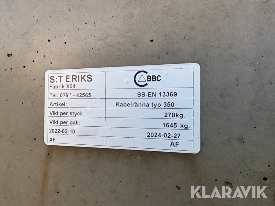 Kabelränna 6 st S:T Eriks Typ 350