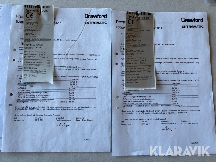 • Serie/chassinummer framgår