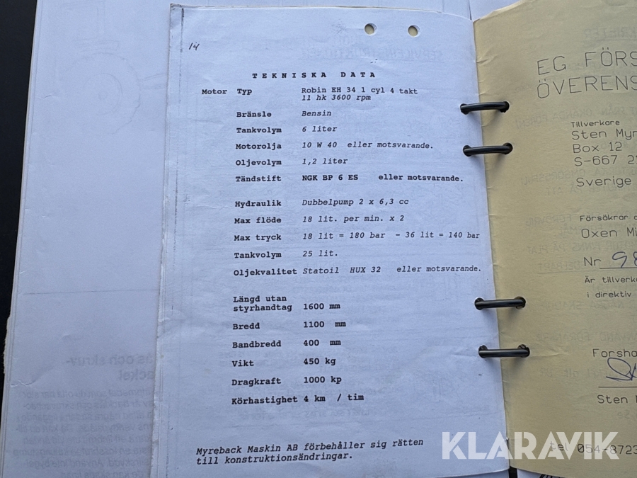 Boka frakt? Det finns ingen specifik information om frakt för just det här objektet, men om du skickar oss en förfrågan via vårt fraktformulär, så undersöker vi möjligheten. Paket, EU-pall eller större maskin? Klaravik har fraktavtal med Schenker och i de fall vi kan hjälpa till med frakt gäller det objekt som ryms i paket eller inom en EU-pall (upp till 120*80 cm och 990 kg). Det går att beställa frakt inom Sverige, dock inte till utlandet. Vid frakt på större maskiner rekommenderar vi gärna transportföretag som du kan kontakta.