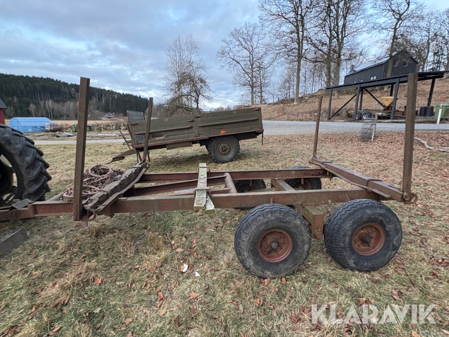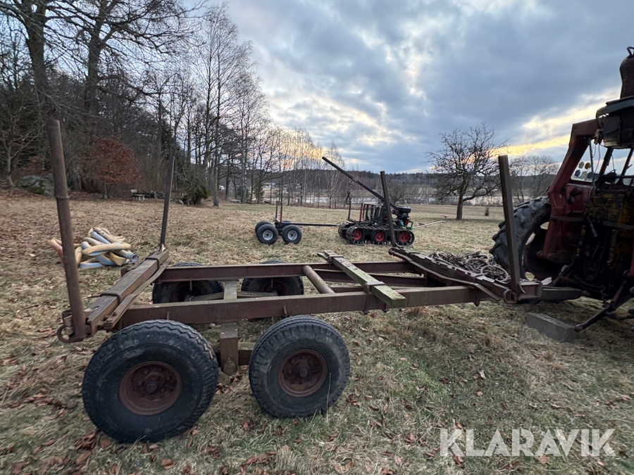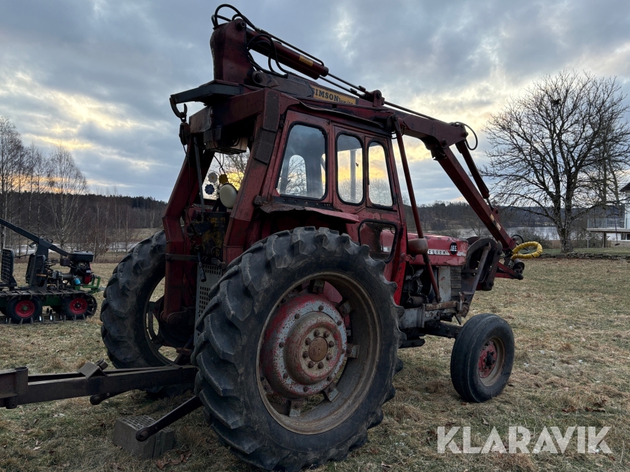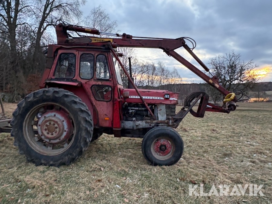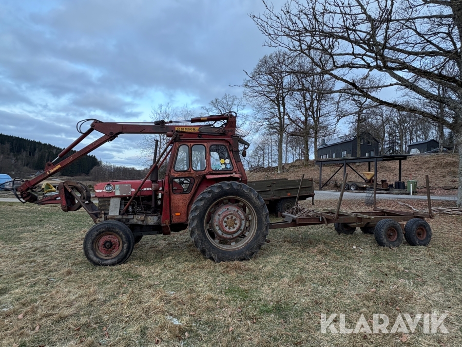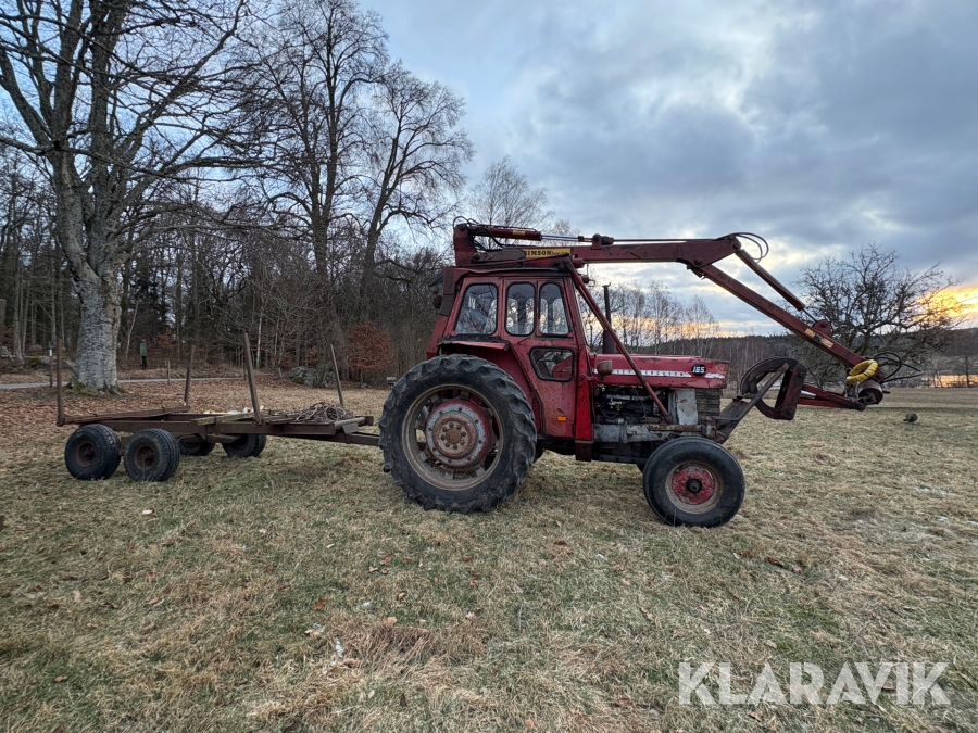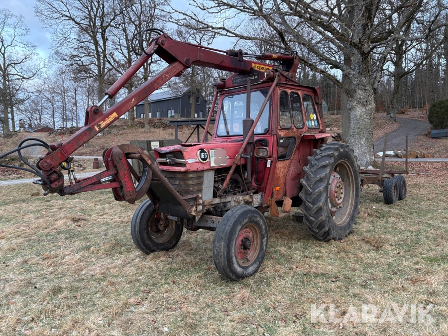 Traktor Massey Ferguson 165 med skogskran och skogsvagn