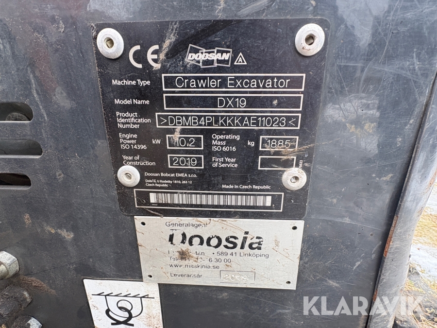 Grävmaskin Doosan DX19 med redskap