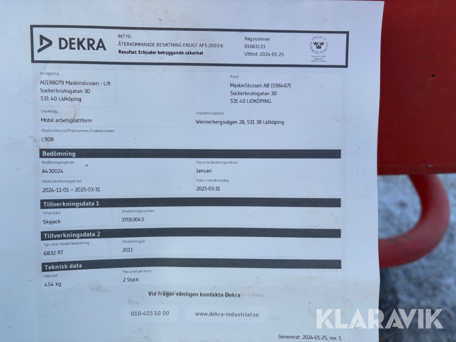 Läs om metodikenPga platsbrist är det viktigt att du som köpare hämtar inom 12 dagar från auktionsavslut. Vid frågor om frakt kontakta trade@ramirent.se.