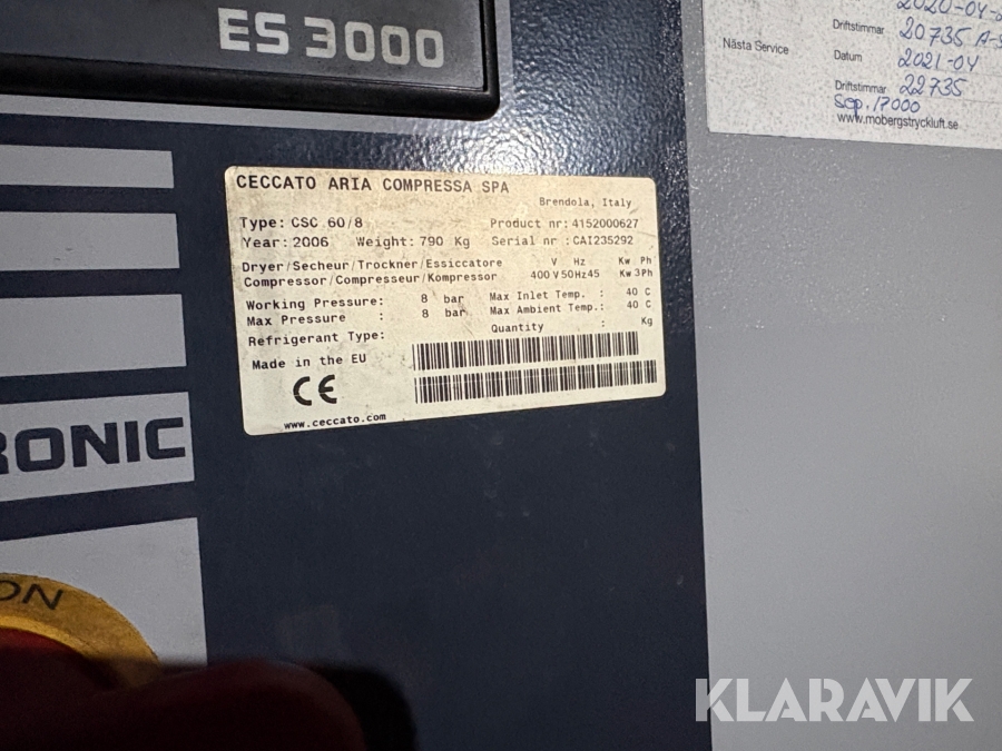 Kompressor Ceccato Aria Compressa CSC 60/8 med Atlas Copco luftbehållare