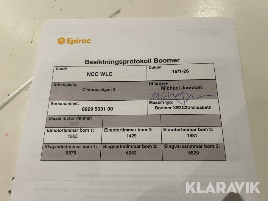 Borrigg Epiroc Boomer XE3C