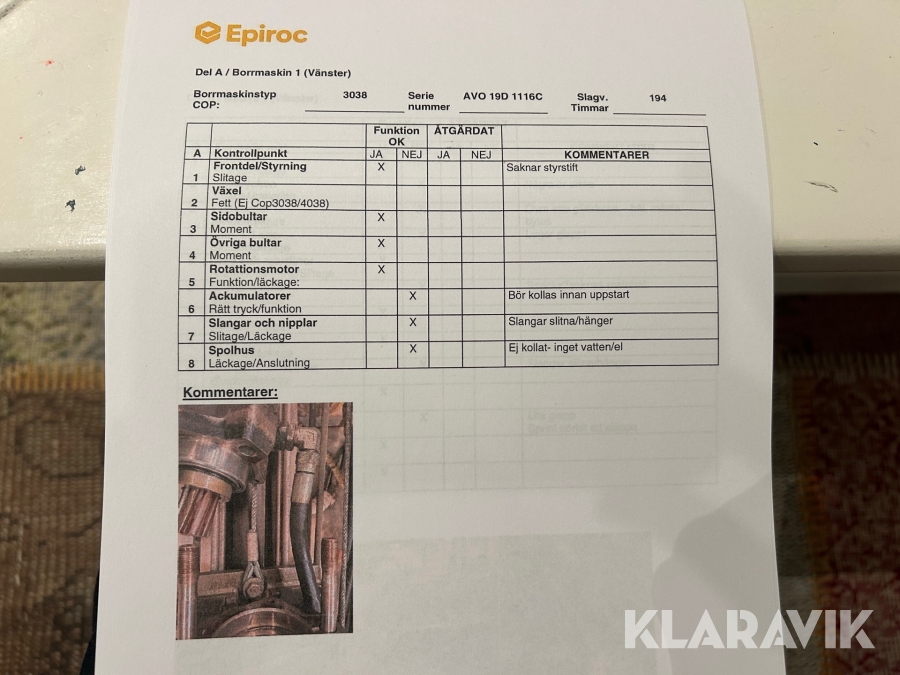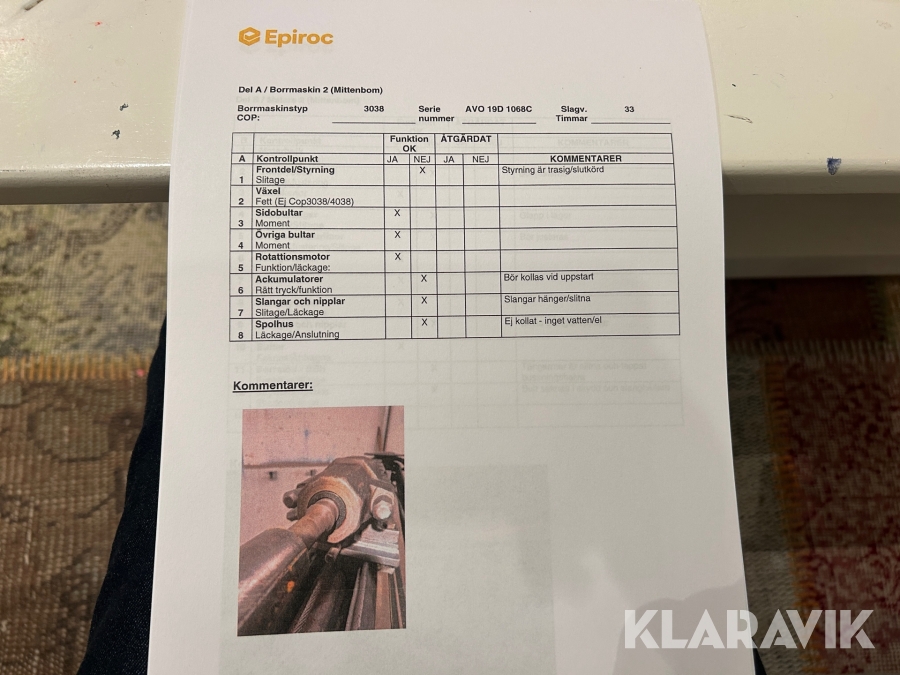 • Serie/chassinummer framgår