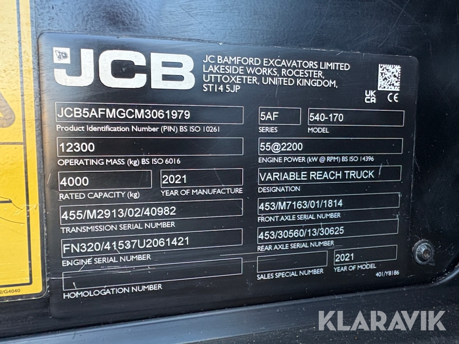 Teleskoplastare JCB 540-170 med skopa och gafflar