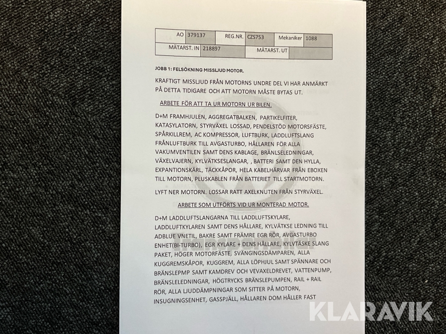 • Serie/chassinummer framgår