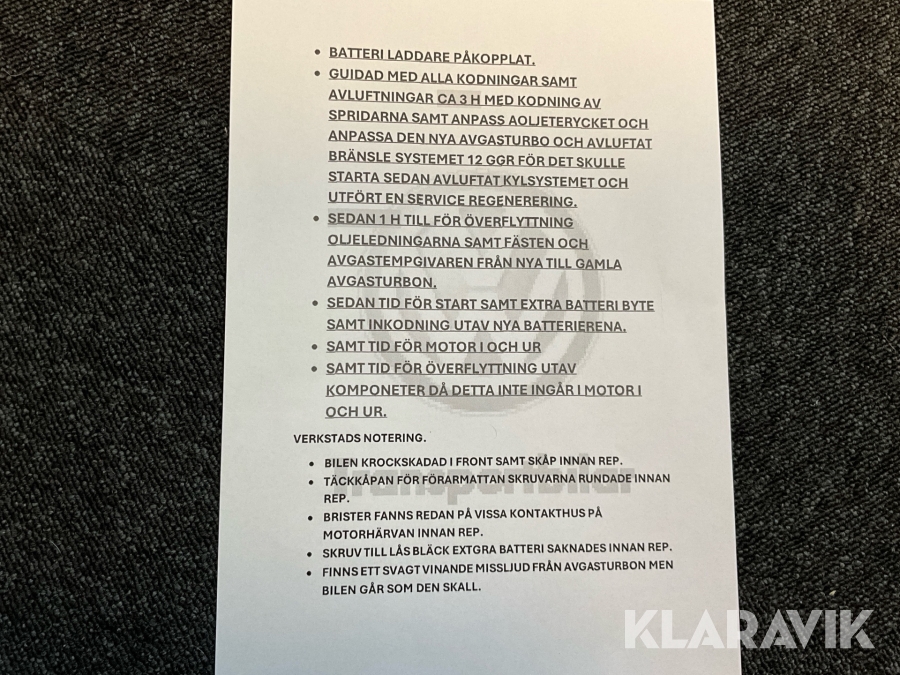 Du som köpare är skyldig att kontrollera objektet vid hämtning. Skiljer sig något avsevärt jämfört med informationen på klaravik.se? Kontakta då Klaravik innan du tar objektet från platsen. Läs fullständiga köpvillkor.