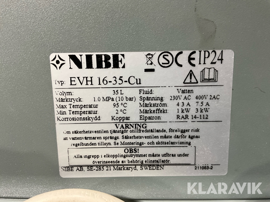 Varmvattenberedare Nibe EVH 16-35-Cu