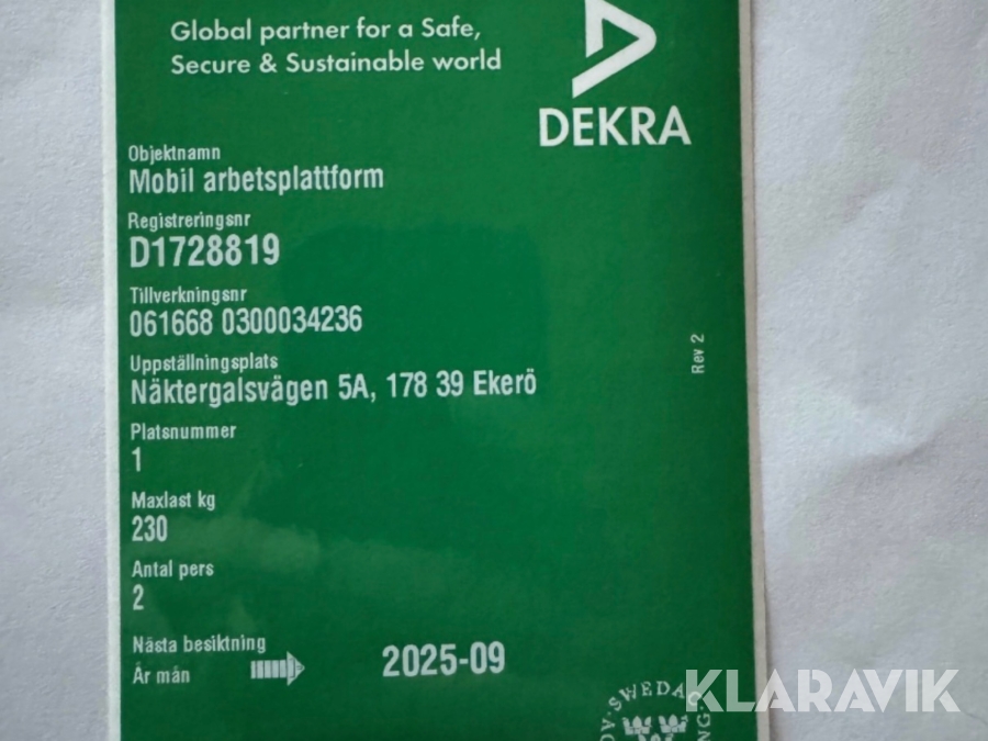 Du som köpare är skyldig att kontrollera objektet vid hämtning. Skiljer sig något avsevärt jämfört med informationen på klaravik.se? Kontakta då Klaravik innan du tar objektet från platsen. Läs fullständiga köpvillkor.