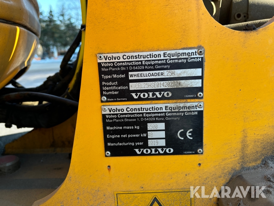 Hjullastare Volvo L25HS med planeringsskopa och gafflar