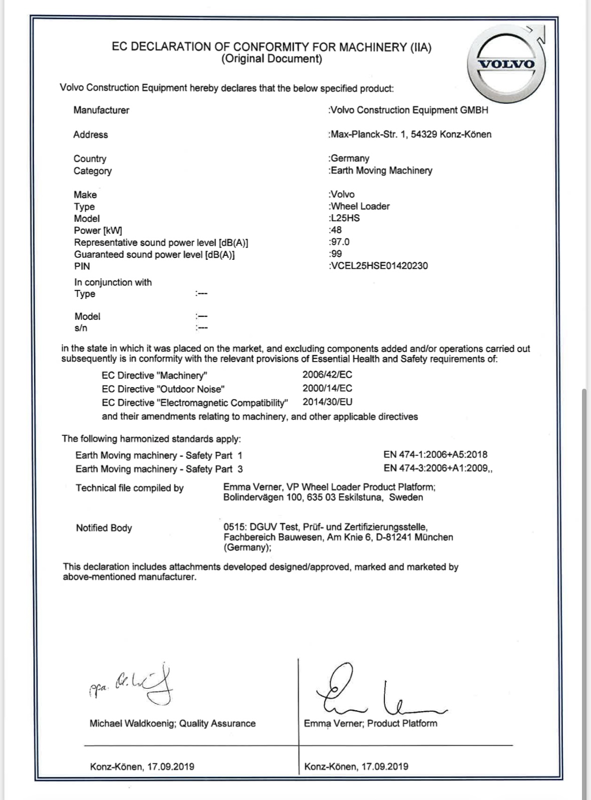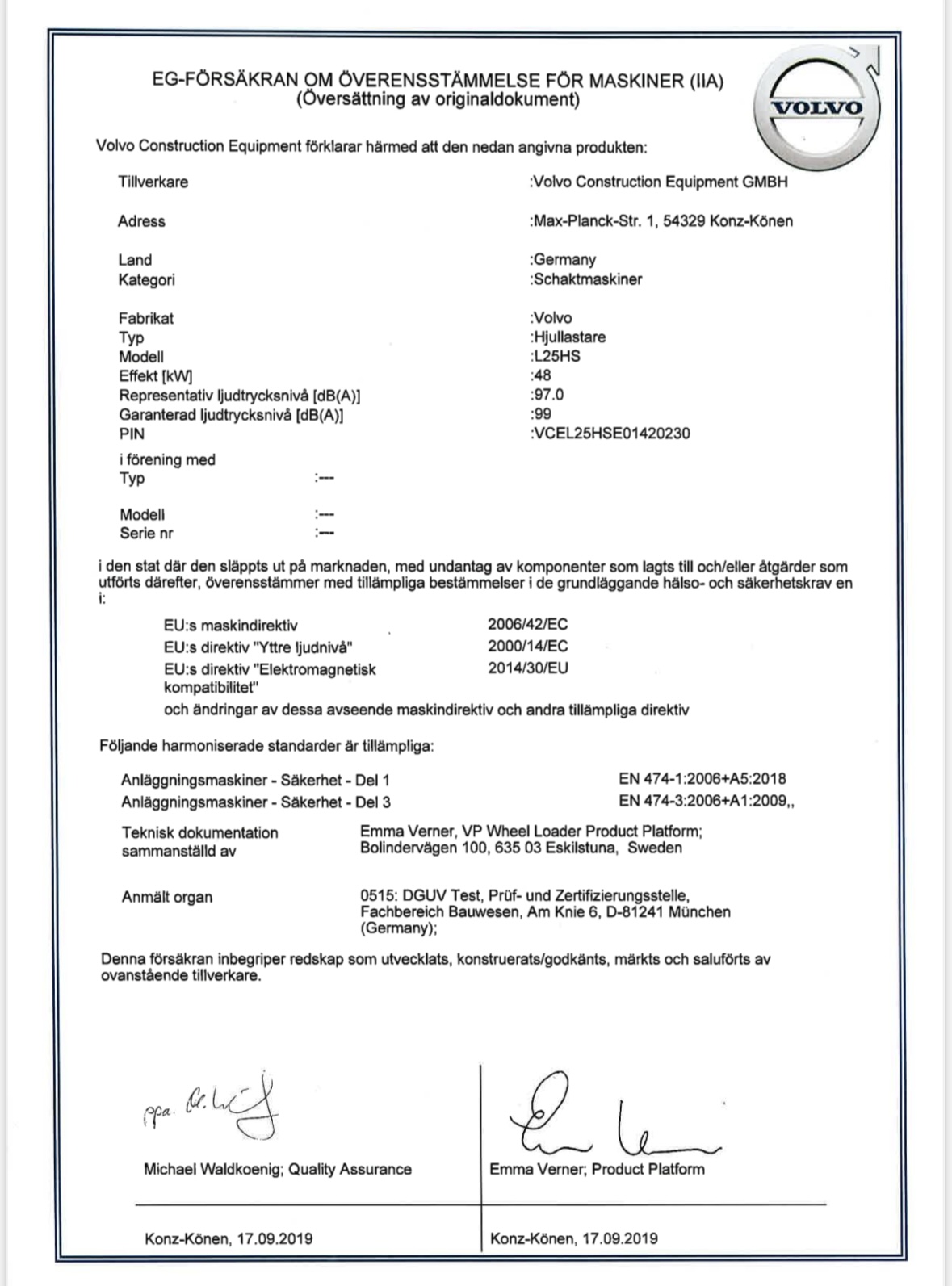 • Serie/chassinummer framgår
