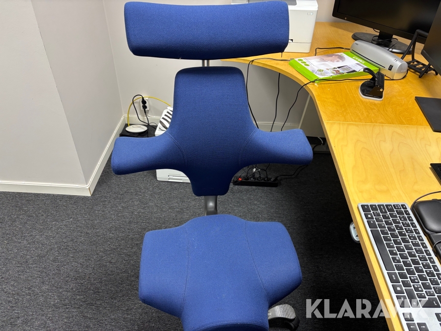 Diverse kontorsutrustning med bord och stol