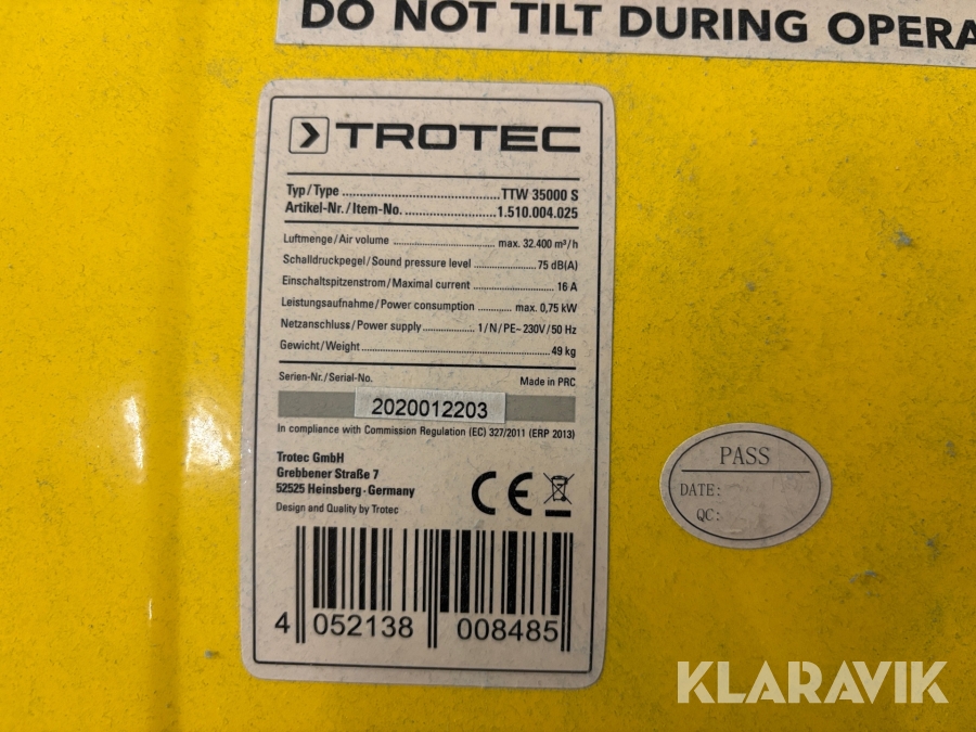 Industrifläkt Trotec TTW 35000 S