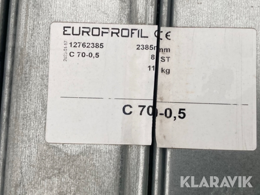 Parti med plåtreglar Europrofil C70 2385mm