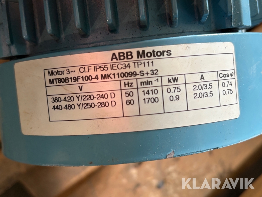 Elmotor med växlare ABB MT80B19F100-4