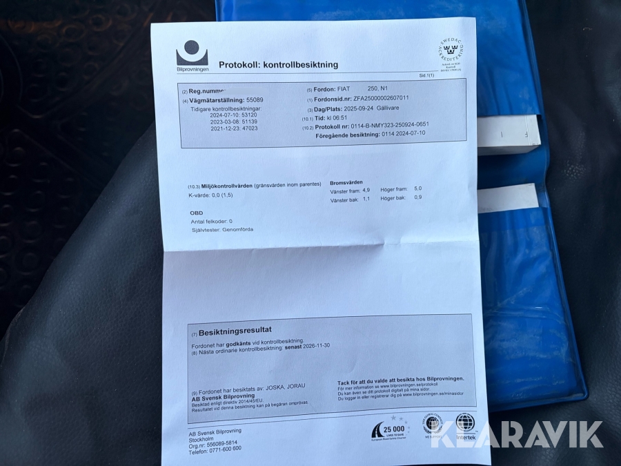• Serie/chassinummer framgår