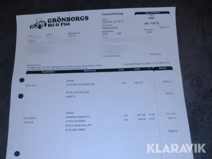 Du som köpare är skyldig att kontrollera objektet vid hämtning. Skiljer sig något avsevärt jämfört med informationen på klaravik.se? Kontakta då Klaravik innan du tar objektet från platsen. Läs fullständiga köpvillkor.