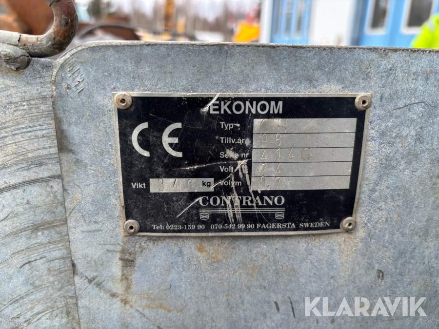 Boka frakt? Det finns ingen specifik information om frakt för just det här objektet, men om du skickar oss en förfrågan via vårt fraktformulär, så undersöker vi möjligheten. Paket, EU-pall eller större maskin? Klaravik har fraktavtal med Schenker och i de fall vi kan hjälpa till med frakt gäller det objekt som ryms i paket eller inom en EU-pall (upp till 120*80 cm och 990 kg). Det går att beställa frakt inom Sverige, dock inte till utlandet. Vid frakt på större maskiner rekommenderar vi gärna transportföretag som du kan kontakta.