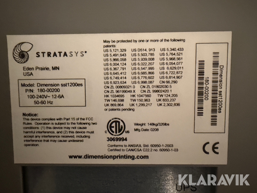 3D printer Stratasys Dimension Sst 1200es