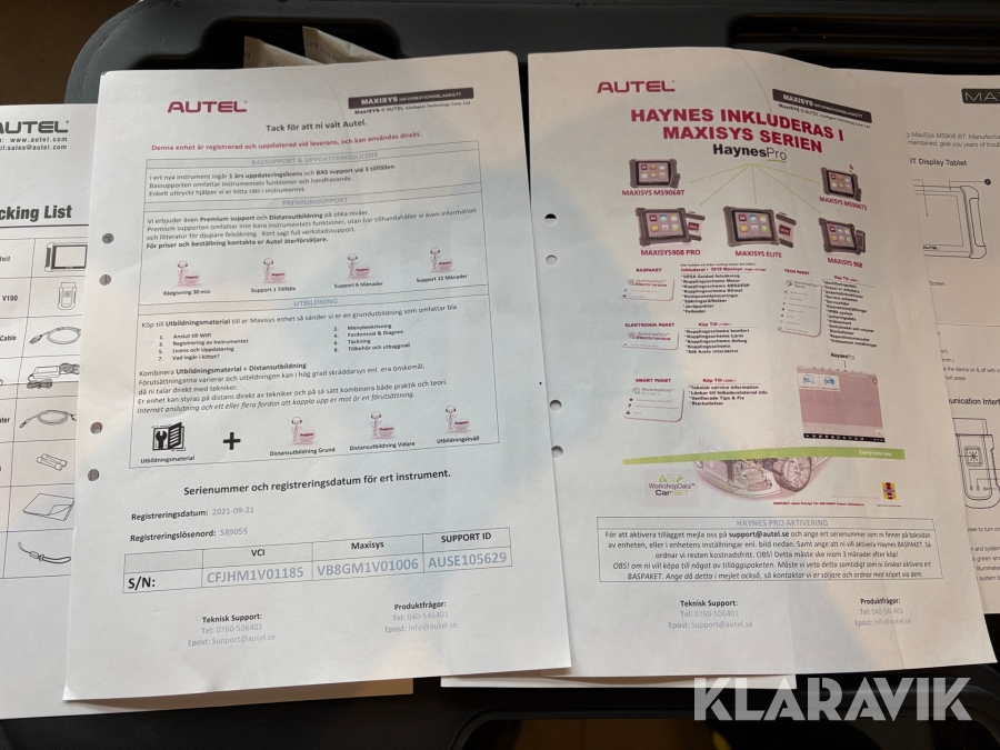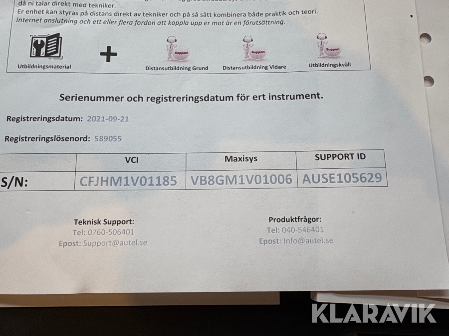 • Serie/chassinummer framgår