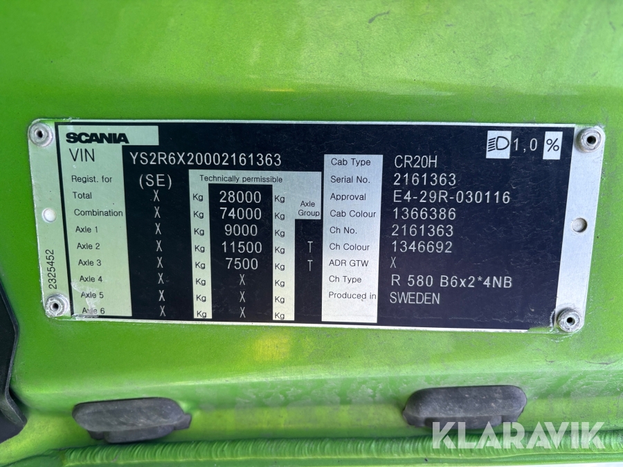 Fjärrbil/skåpbil Scania R 580 B6X2*4NB