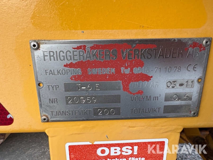 Boka frakt? Det finns ingen specifik information om frakt för just det här objektet, men om du skickar oss en förfrågan via vårt fraktformulär, så undersöker vi möjligheten. Paket, EU-pall eller större maskin? Klaravik har fraktavtal med Schenker och i de fall vi kan hjälpa till med frakt gäller det objekt som ryms i paket eller inom en EU-pall (upp till 120*80 cm och 990 kg). Det går att beställa frakt inom Sverige, dock inte till utlandet. Vid frakt på större maskiner rekommenderar vi gärna transportföretag som du kan kontakta.