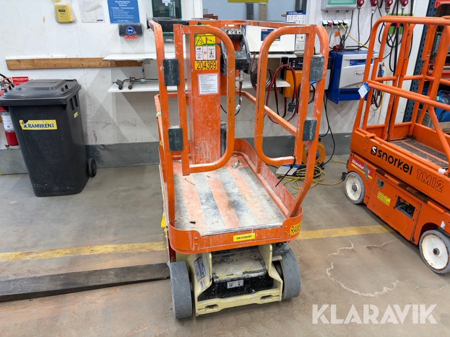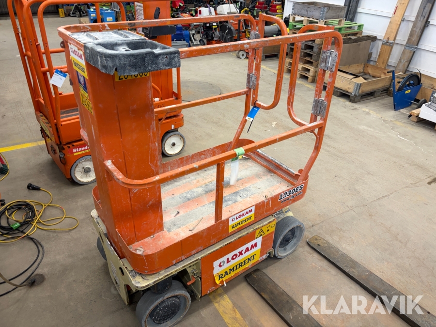 JLG 1230ES är en kompakt och eldriven pelarlift som är idealisk för arbete på höjd i trånga inomhusmiljöer. Med en arbetshöjd på upp till 5,66 meter och en plattformskapacitet på 230 kg erbjuder den en stabil och säker arbetsplattform för en person med verktyg. Dess smala bredd på endast 0,76 meter och låga vikt på cirka 790 kg gör den lätt att manövrera genom standarddörrar och i hissar, vilket underlättar arbete i begränsade utrymmen. Med en svängradie på endast 13 cm och en körhastighet på upp till 4,8 km/h i nedfällt läge är den mycket lättmanövrerad. Säkerhetsfunktioner som lutningssensor, potthålsskydd och varningslarm är standard, vilket gör JLG 1230ES till ett pålitligt val för underhålls- och installationsarbeten inomhus.