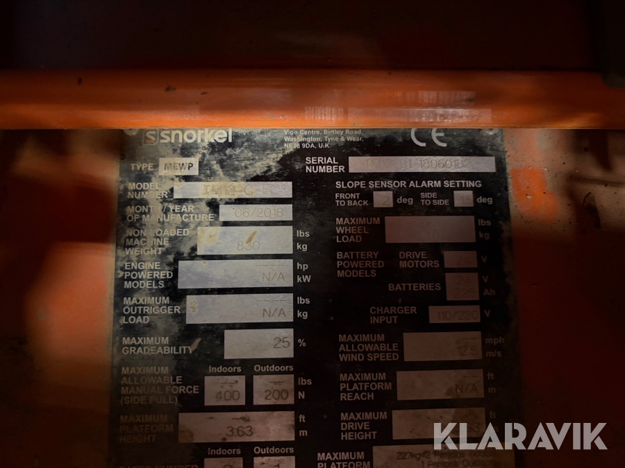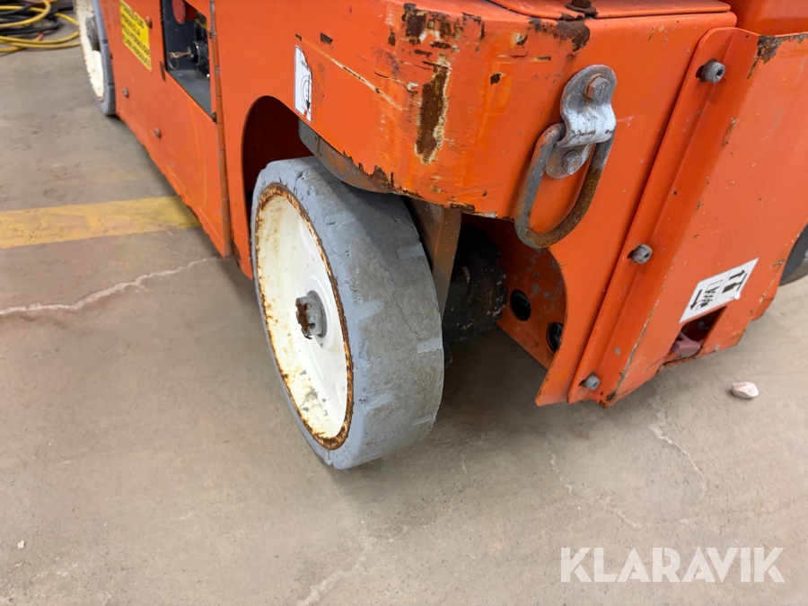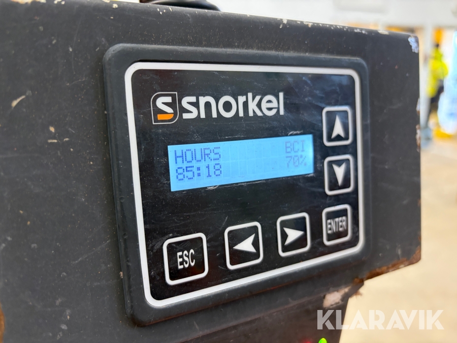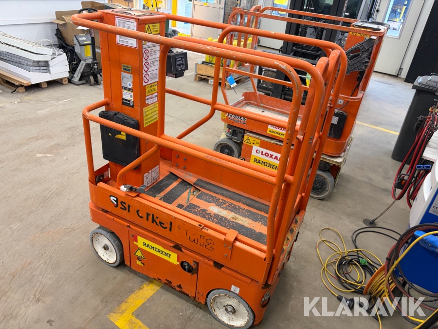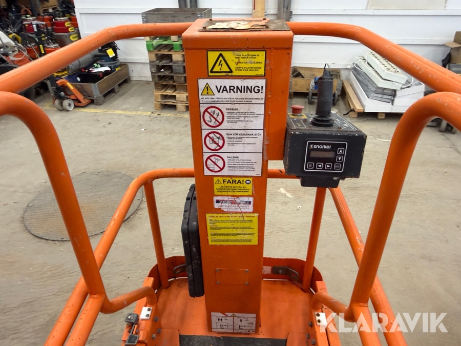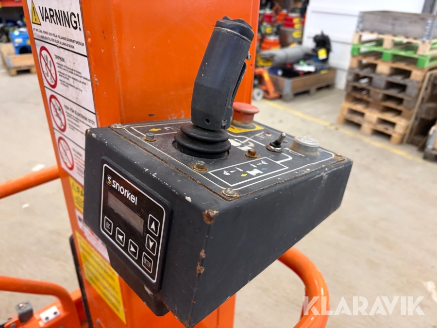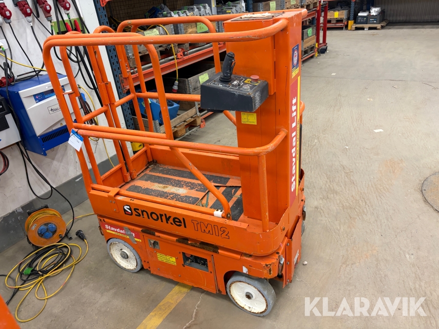 Snorkel TM12 är en kompakt och självgående teleskopisk pelarlift, särskilt utformad för arbete på höjd i trånga inomhusmiljöer. Med en arbetshöjd på upp till 5,6 meter och en plattformskapacitet på 227 kg erbjuder den en stabil och säker arbetsplattform för en eller två personer med verktyg. Dess smala bredd på endast 0,76 meter och låga vikt på cirka 830 kg gör den lätt att manövrera genom standarddörrar och i hissar, vilket underlättar arbete i begränsade utrymmen.