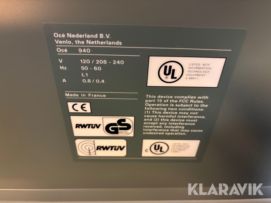 Storformatsvikmaskin Océ 940